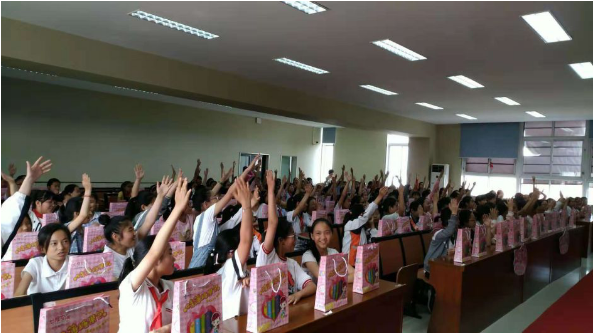 在这样的愿景之下,2018年我们在全国中小学开展成长的翅膀青春期初潮知识讲座活动,共计举办了2000多场,覆盖近100万的9-12岁年轻小女生。